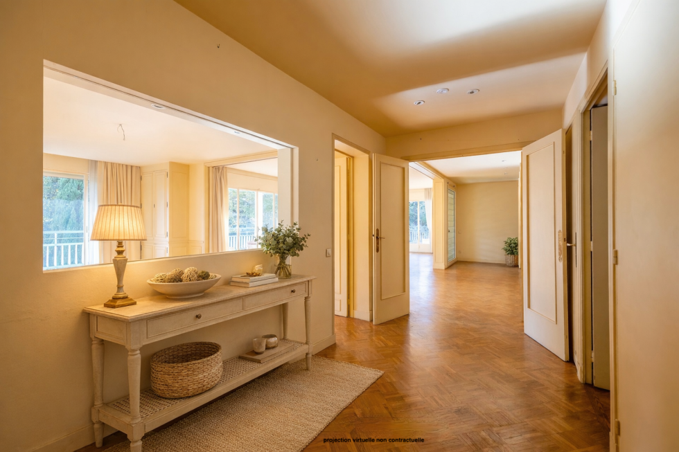 Parc de Bagatelle, dans une belle résidence arborée et sécurisée, avec concierge, RARE appartement bourgeois familial, de 176m2, entouré d'une BELLE TERRASSE de 57m2, avec VUE DEGAGEE sur la VERDURE, SANS VIS A VIS. L'agencement de ce bien offre une superbe double reception de 82m2!!! ensoleillée par de larges baies vitrées, ouvrant directement sur la TERRASSE qui l'entoure. 3 chambres au CALME, avec 2 ou 3 SDB sont actuellement distribuées mais 4 chambres peuvent s'organiser aisément. La cuisine dispose d'une belle loggia pour un cellier/buanderie, avec une porte de service si besoin. La fonctionnalité de l'appartement est remarquable! On apprécie le chic hall d'entrée, les nombreux dressings, la cave et la possibilite d'acquérir un PARKING PRIVATIF en exterieur ( 20000€ en sus) et/ou un BOX en sous sol sécurisé (prix en sus). Le CONFORT se confirme avec une situation recherchée pour les nombreuses commodités immédiates: Ecole de Provence, Tennis, parc, commerces accessibles à pieds et acces aux autoroutes rapide!