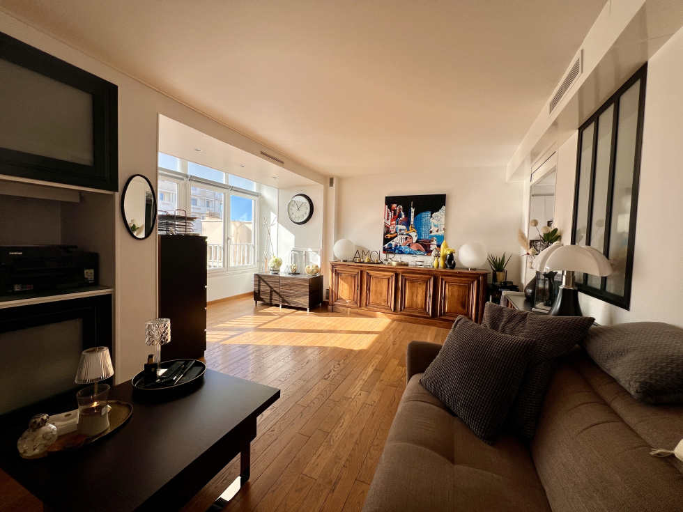 Devant la MER, immediatement sur la PLAGE des Catalans, au 4eme etge (ascenseur) d'une copropriété entretenue, T3 TRAVERSANT avec BALCON, de 75m2 habitables (71,19m2 en loi carrez), en PARFAIT ETAT! Le séjour de 25m2 et son BALCON sont exposés PLEIN SUD, pour un SOLEIL génereux. On peut observer la MER depuis le BALCON, pour décider d'aller nager ou pas, sur la PLAGE ou au Cercle des nageurs, situés au pied de la residence. Une belle cuisine équipée, avec loggia organisée, laisse la place a une table de repas, en gardant une bonne fonctionnalité pour qui aime cuisiner! Les chambres disposent de rangements intégrés qui complètent les nombreux dressings du couloir et entrée. Enfin la salle de bain, récemment aménagée, se distingue d'une buanderie et du wc indépendant. Pour parfaire le CONFORT, ce bien dispose d'une cave et les nouveaux proprietaires pourront reprendre la location d'un BOX, parfaitement situé, en face de l'entrée. De nombreuses PRESTATIONS comme la climatisation reversible, les volets roulants electriques...ont été récemment installées Le quartier en front de MER est apprécié pour son ambiance de vacances, avec la PLAGE, des restaurants, commerces et un accès rapide aux autoroutes et au vieux port accessible à pieds. Ce bien, alliant loisirs et facilités du quotidien (écoles, transports...), est une opportunité pour une residence principale, comme pour un pied à terre au bord de l'eau. Une installation immédiate présente un intérêt supplementaire, sans travaux à prévoir.
